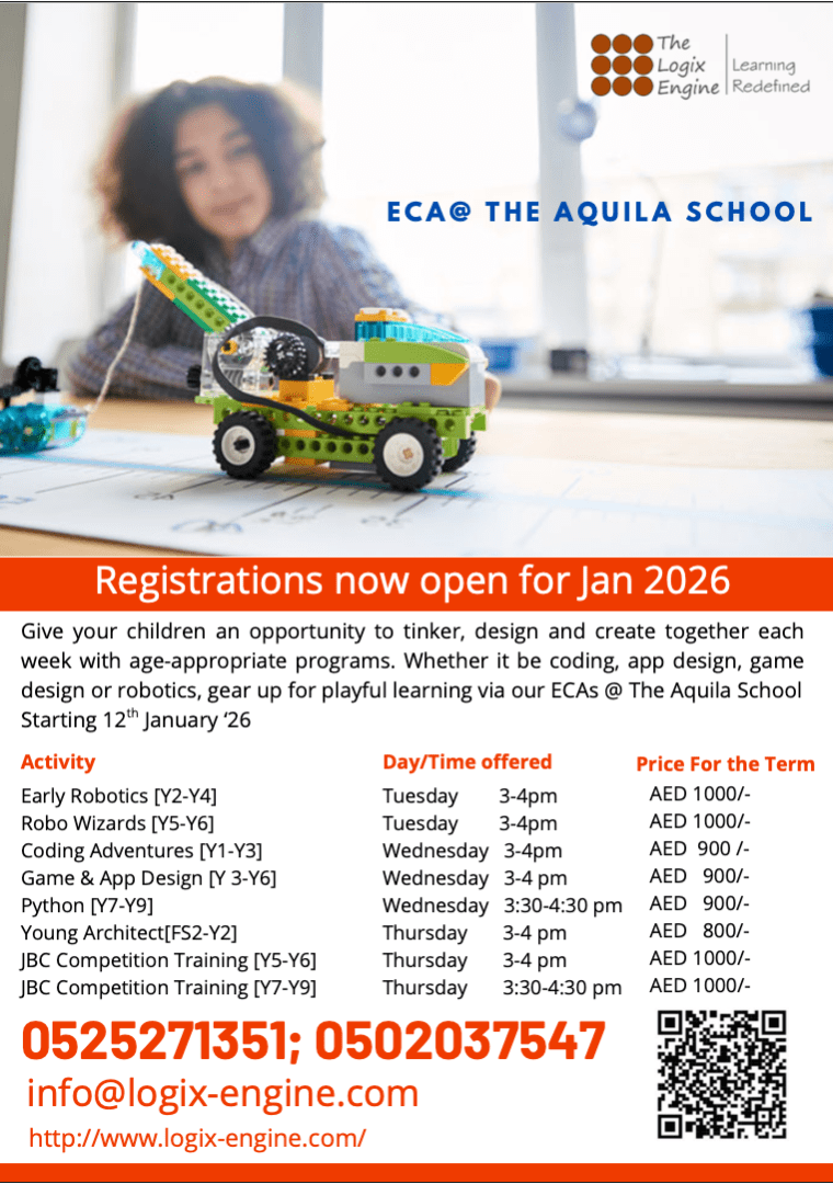Registrations are open for ECA activity schedule at The Aquila School. Each activity has a limited number of slots served on a first come first serve basis. Only students of The Aquila School can register for this activity.
